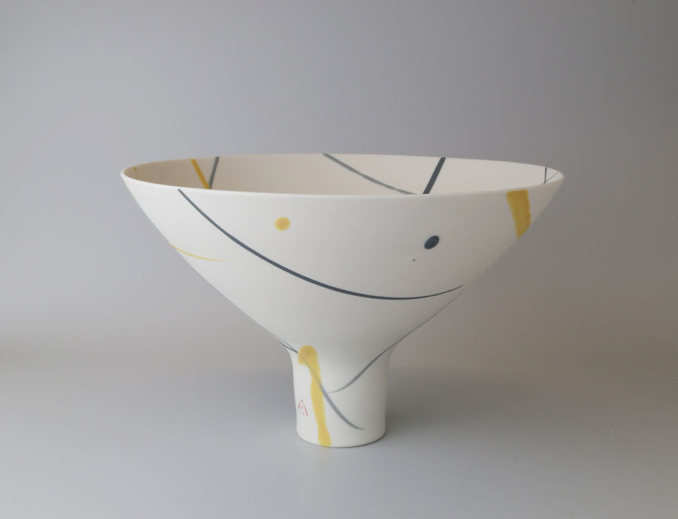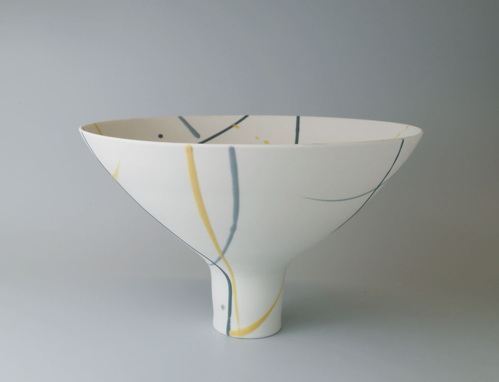 Thrown porcelain with a fine rim and a matt surface, they can be used safely for food, but wash by hand if possible.
